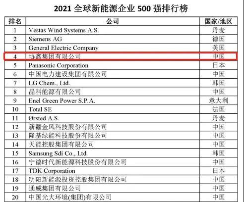 9月4日,由國際可再生能源署、中國長江三峽集團有限公司、中國能源報、山西省能源局等單位聯合舉辦的氫能產業發展論壇暨第十一屆全球新能源企業500強峰會在山西太原舉行。大會發布2021全球新能源企業500強榜單,協鑫集團位列全球第四,并繼續領跑中國新能源企業,成為前五強中唯一中國企業。
